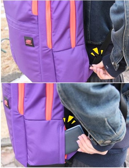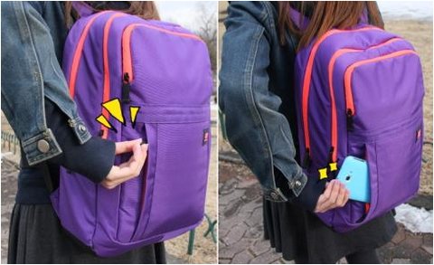 스타일도 챙기고, 한 가방 속에 쏙~ 편안함도 챙기는 센스 돋는! 백팩이랍니다.어두운 색상의 옷에도 퍼플의 강렬한 컬러가 포인트를 주어 발랄한 스타일을 연출할 수 있답니다.