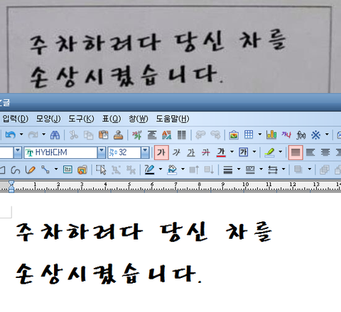 글씨를 정말 잘쓰시네요 마치 HY바다M 폰트 같아요