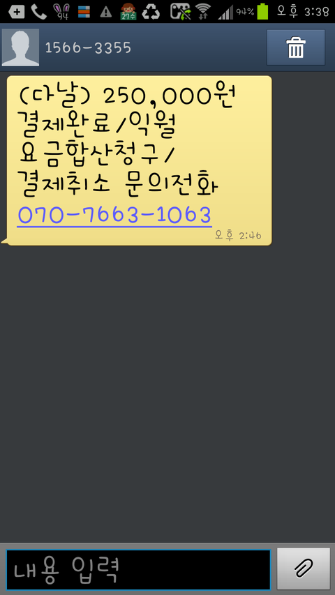 근데 그 문자에 친절히 결제 취소를 하려면 전화하라고 번호까지 보내줬음