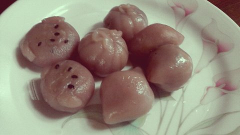 딸기물을 우려만든 딸기 송편이에요. 나름 돼지도 만들고 호박도만들어 봤는데 찜통에