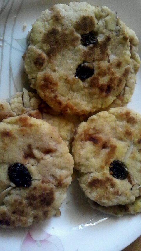 짜잔~ 애플 쿠키 완성샷이에요! 건포도랑 아몬드도 씹히고 음냐음냐 향긋한 애플향도