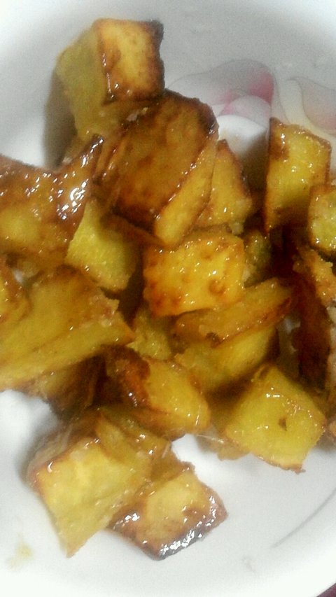 이건 한창 밭에 고구마 풍년일때 만든거에요. 맛탕은 물엿보다 설탕으로 만든 시럽에