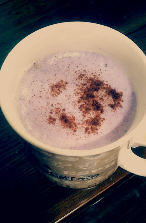 마지막으로 자색 고구마 라떼에요~ 자색고구마를 삶아 으깨어 우유와 함께 끓여 내는거라