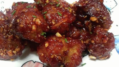 닭강정 완성!!! 땅콩도 씹히고 허브향도나고 굳.