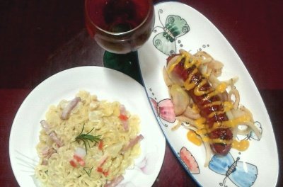고소고소한 까르보나라와 매콤매콤한 양념핫바 꼭 해드셔요.