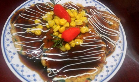 호떡 반죽을 구운거 위에 콘샐러드를 넣고