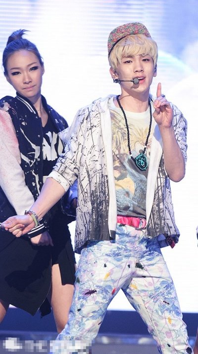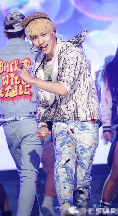 백금발에 가까운 밝은 색으로 염색하고 활동중인 샤이니의 키