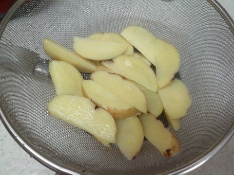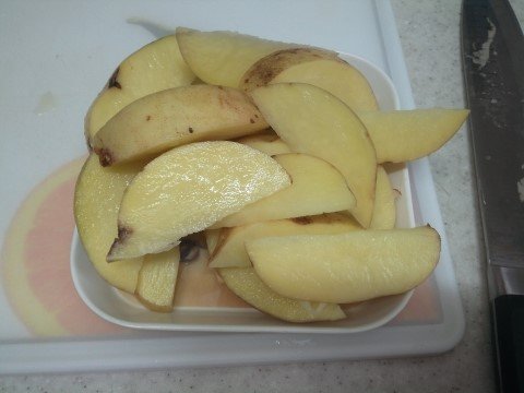 그다음 감자를 반으로 자른뒤 웨지모양으로잘라주세요~