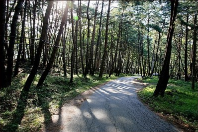 소나무 숲 길은 시원한 솔 향기기가 솔솔 난다고 해요.