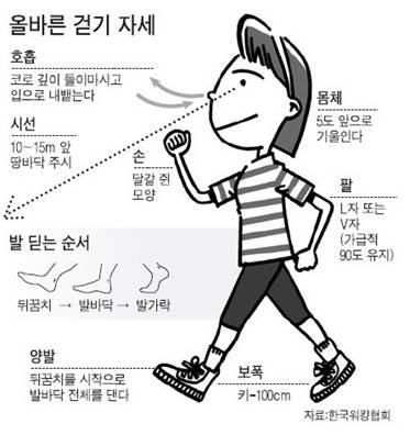 걷기 운동에서 가장 중요한 것은 바른 자세라고 하니,