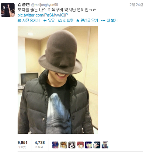 저모자는 샤이니 키가 자주쓰는모자임 ▼