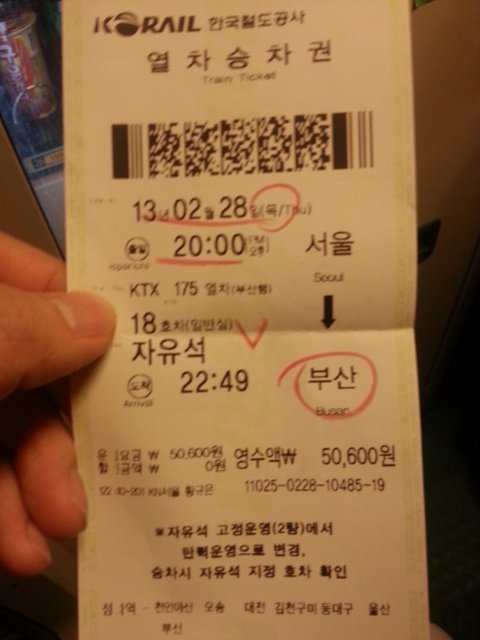 바야흐로 어제도 아니고 오늘!!! 방금!!! 서울에서 부산행 KTX 열차 8시출발!!!