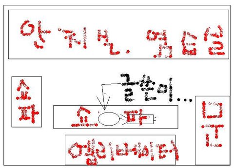 위에 사람모양이 글쓴이가 누운거임.