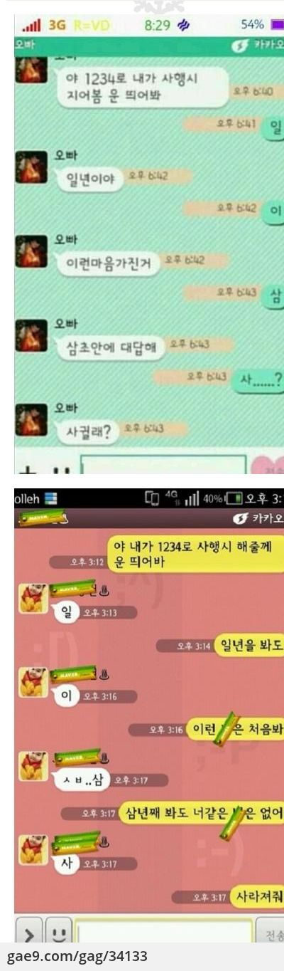 일:일분안에 말할 테니 귀찮아 말고 들어 이:이렇게 계속 옆에 있어줘서 고마워 삼:삼십년,삼백년이 지나도 옆에 있어줄꺼지? 사:사랑한다 친구야 생일 축하하고. 생일이 3.1절인 9년지기 친구가 생각나서 적어봄