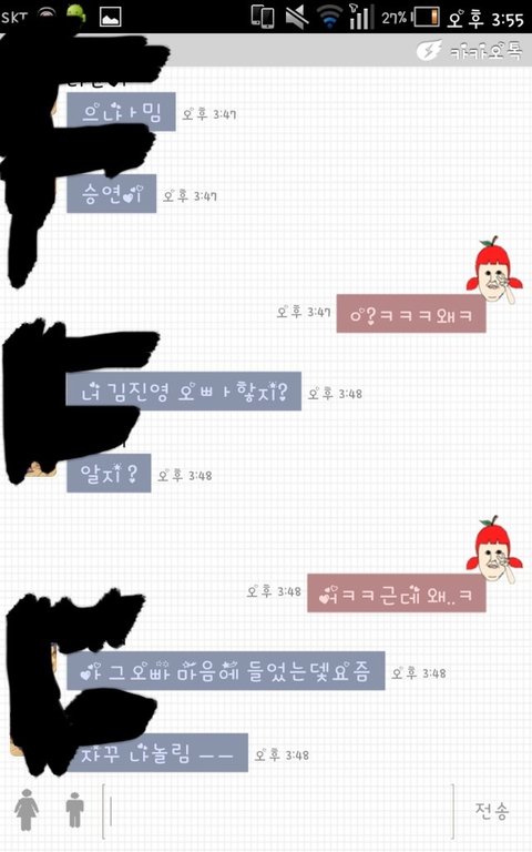 그오빠랑 서로김태희 원빈거리면서 놀겟지 그래봣자 오징어랑쭈꾸미가 톡하면서낄낄대는거밖에안되지 걔는김태희발톱때만큼도 이쁘지않겟지