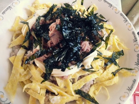 그위에 닭알 간장소스 참치 마요네즈 김 을 올리면 끝ㅋ