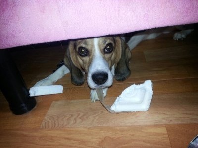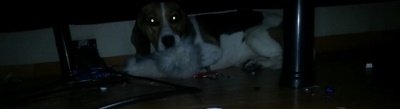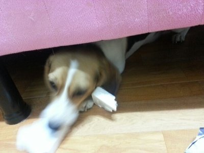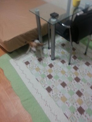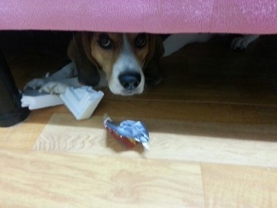침대밑에 숨으면 자길 잡을 수 없는지 아나 봄..