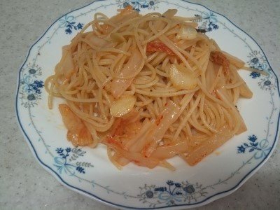 알리올리오김치파스타에요~ㅎㅎ 김치랑 마늘볶은기름에 같이볶아주기만하면완성~