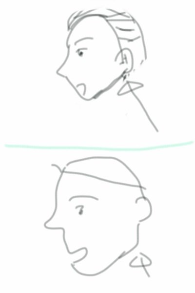 보통 저렇게 귀부터 바로 떨어지는 라인은 의학의힘이에요