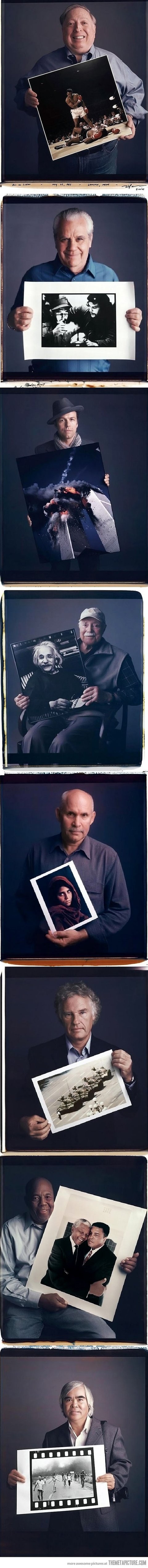이 사진들은 Tim Mantoani 라는 사진작가분이 세계 명작 사진들과 사진작가들을 함께 찍은 작품집'Behind Photograph'에 실린 것들입니다. 무려 150사진들 이상이나 실렸다는군요. 판제목처럼 명작사진들이라 세계적으로 유명한데 사진작가는 묻혀지는게 안타까워 프로젝트를 시작했답니다. 제가 다는 모르지만 몇몇 사진은 제가 알고 있고 정보를 쉽게 찾을 수 있어서 댓글로 소개합니다. 첫째, Neil Leifer 작가의 Muhammad Ali vs. Sonny Liston. 유명한 복싱선수 무하마드 알리가 승리한 사진 두번째, 쿠바의 사회주의 혁명가 체게바라를 담은 사진입니다. 세번째, 대부분은 아시겠지만 뉴욕의 쌍둥이 빌딩이 무참하게 무너져내린 9.11 사진입니다. 작가는 Lyle Owerko입니다. 네번째, 아인슈타인! 이 천재를 모르는 분들은 거의 없겠죠ㅋㅋ 다섯번째, 개인적으로 너무나도 좋아하는 사진 Steve McCurry 이 찍은 Afgan Girl입니다. 네셔널지오그래피 메인 사진으로 장식되기도 했죠. 여자의 눈이 너무 신비로워서 계속 보게 되었음ㅋ 1984년 당시 12살이었던 여자를 작가가 누군지 몰라서 찾아헤매다 마침 2002년에 여자를 만날 수 있었다고 합니다. 여섯째, 자세하게 보면은 탱크 앞에 한 남성이 있습니다. 일명 '탱크맨'이라고 불립니다. 중국에 텐안먼 광장에서 일어난 텐안문 민주화 운동을 진압하려는 탱크 앞에 혼자 우뚝 서있었기 때문이죠. 이때 많은 사람들이 정부의 유혈진압으로 많이 죽었습니다.... 작가는 Jeff Widener 일곱번째 사진은 무하마마드 알리인건 알겠는데 나머지는 잘;;; 마지막 사진은 베트남전쟁의 대표적 사진입니다. 네이팜공격을 피해 달아나는 아이들의 모습을 Nick Ut이라는 베트남인 사진작가가 담았고 이 사진으로 풀리쳐상도 받습니다. 이상 아는대로 조사한대로 댓글에 적었습니다ㅋㅋㅋ