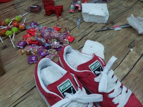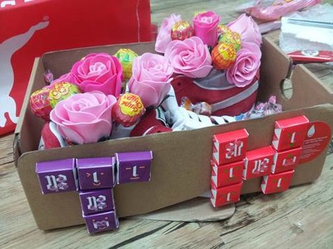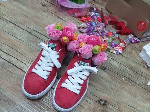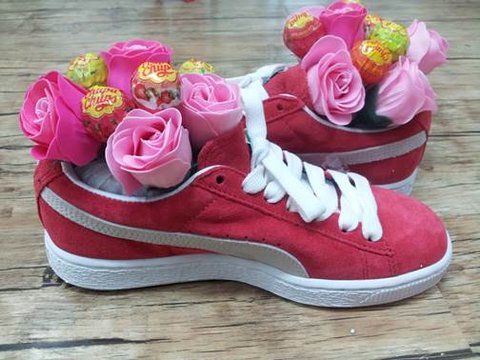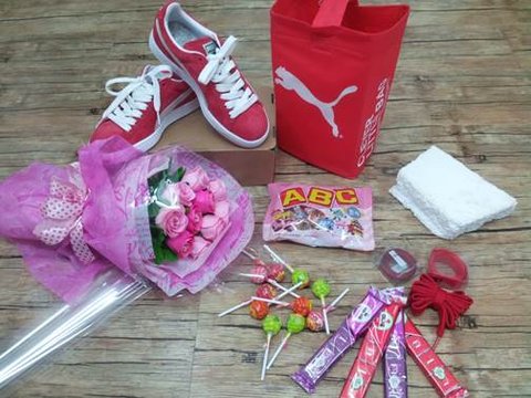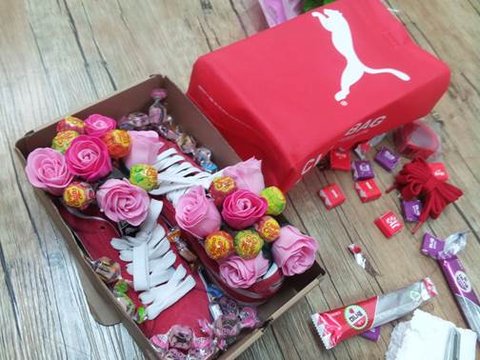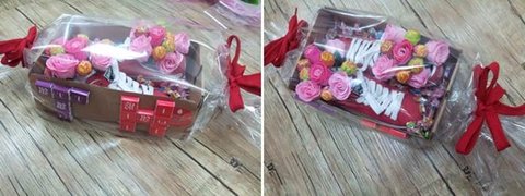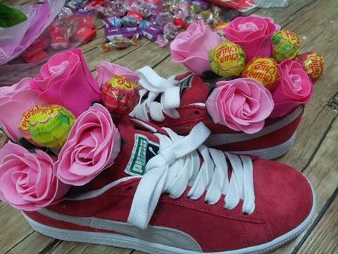 푸마 운동화, 비누 장미꽃, ABC초콜릿, 츄파츕스, 미니쉘, 투명 포장지, 스티로폼