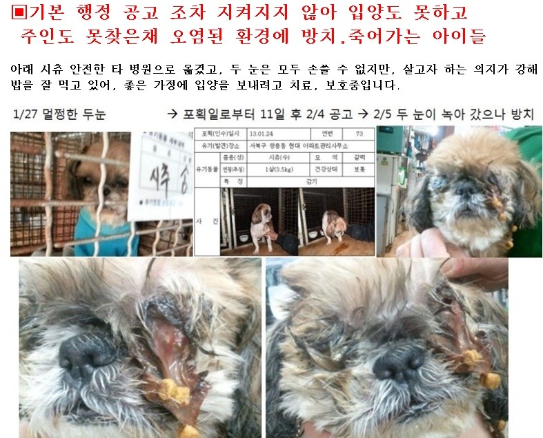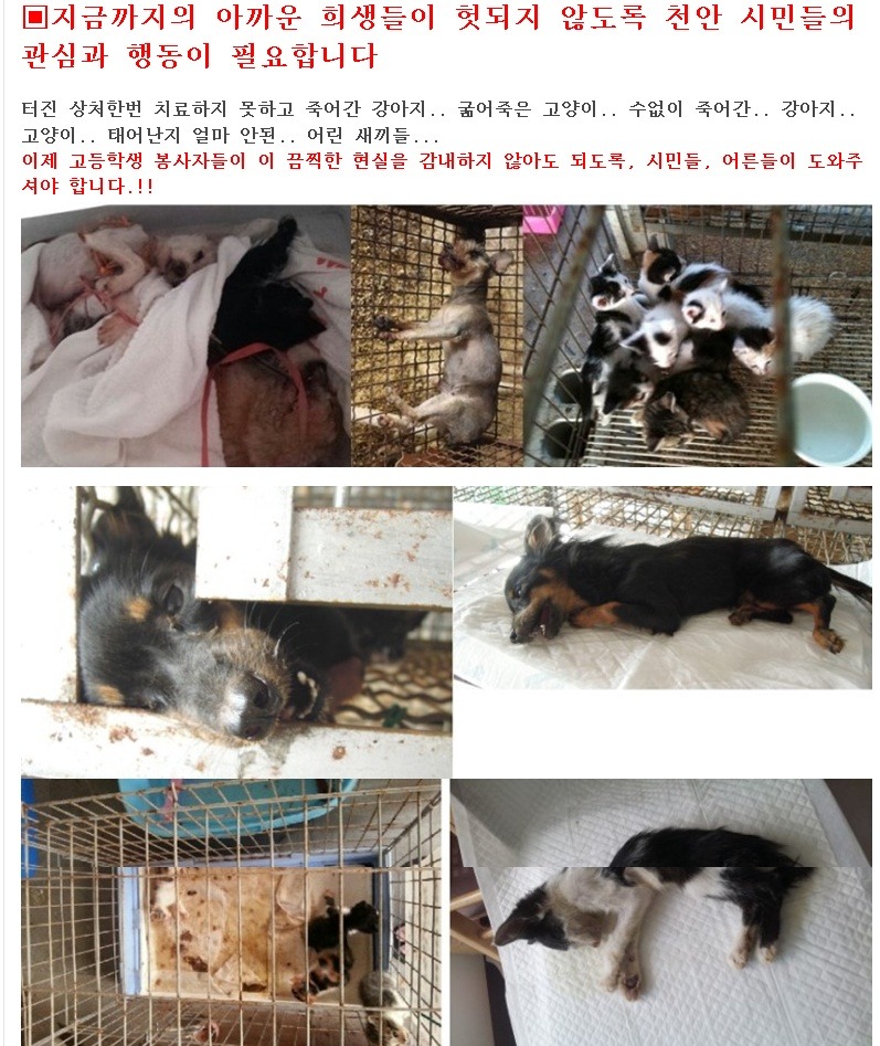 보호소가 아닌 지옥에서 죽어나가는 불쌍한 유기동물들을 위해서