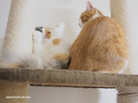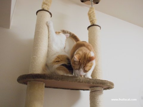 퐁즈가 안달났습니다~~ 꼭대기에서 곤충장난감으로 유봉이랑 놀아주는데..유봉이가 곤충장남감 물고 튈까봐... 빨리 올라가야되는데... 올라가지지는 않고... 이 바보야~ 옆에 계단 있잖아!! ㅎ