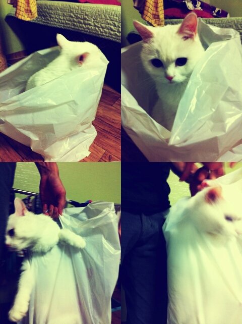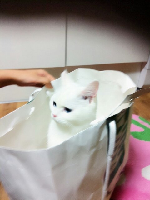쇼핑백, 비닐봉지에 들어가 있는 졸리는 느무느무 예쁘다는 우리의 찍사님~!ㅋㅋ
