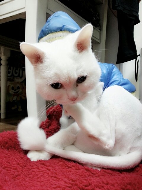 아직 집은 없지만..캣타워 안에 있는 집으로 당분간 만족해~!!!!ㅋㅋㅋ(근데...잘때가 젤 몬생겨써 ㅠㅠ)