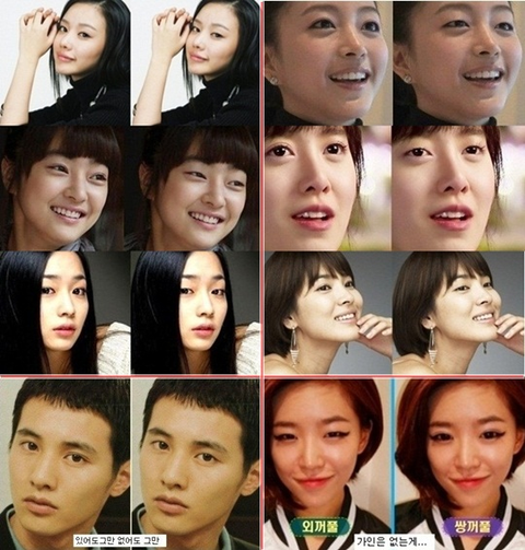 사진은 국내 내로라하는 미녀스타들의 얼굴에서 쌍꺼풀을 강제 제거한 것. 한예슬, 이민정, 송혜교 등 미녀스타들은 그저 쌍꺼풀만 제거했을 뿐인데 확 달라진 이미지로 변신한다.