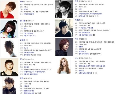 엠블랙미르,투에이엠진운,샤이니키,에프티재진,인피니트우현,비스트동운,미쓰에이민,애프터스쿨나나,카라니콜등으로구성된 아이돌91라인