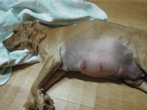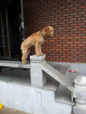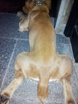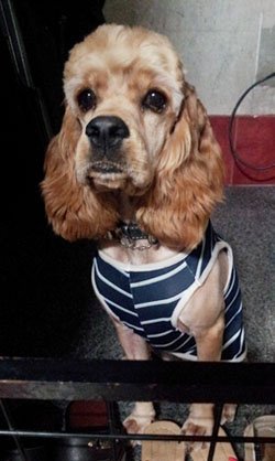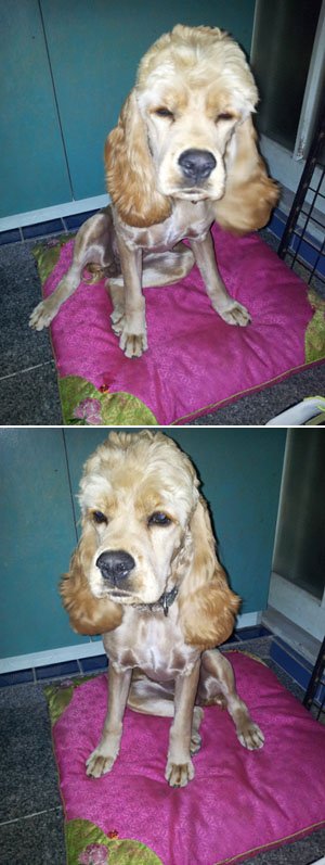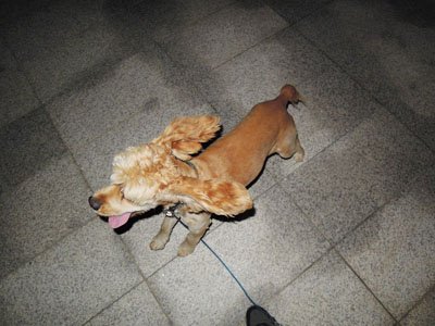 여름에 넘 진짜 더웠을 때. 지쳐하는 코카를 위해 털을 다 밀어줌.