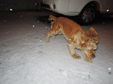 난생 눈을 처음 봄 우리 금산이는 무척 신이났음. 하얀 눈과 금산이의 때탄 털이 대조됨..ㅋㅋㅋㅋㅋ