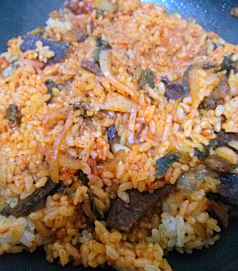 이것은 자취생이라면 누구나 해먹는 소고기 김치볶음밥입니다.