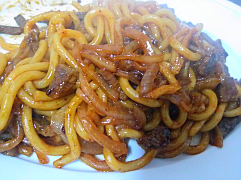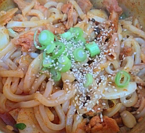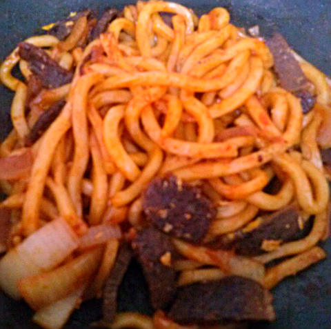 한동안 볶음우동에 삘받아서 계속 해 먹었습니다. 이것은 고추장양념으로 한 소고기고추장 볶음우동.