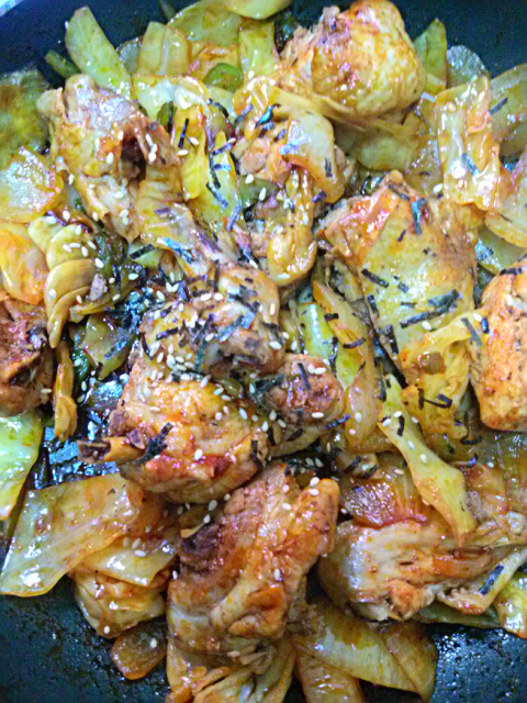 매운닭양배추볶음. 매운양념을 써서 진짜 매웠어요~