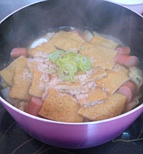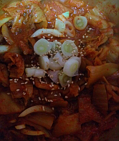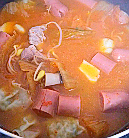 냉장고 뒹굴거리는 재료모아서 만든 김치부대찌개.