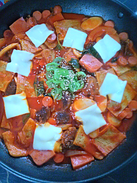 어제 밤에 배가고파서 잠을 잘수 없어서 만든 치즈순대떡볶기.