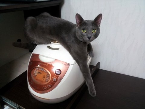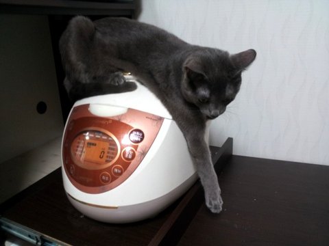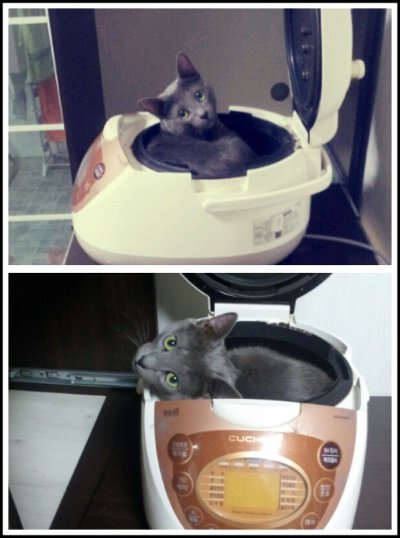 보온된 밥 빼고 뚜껑 열어놨더니 따뜻하니까 저기 들어가 앉았음ㅋㅋ