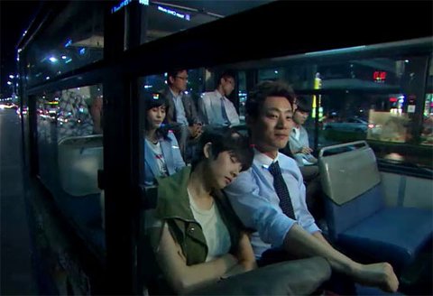 꾸벅거리는 내 얼굴을 자기 어깨에 기대게 해줌