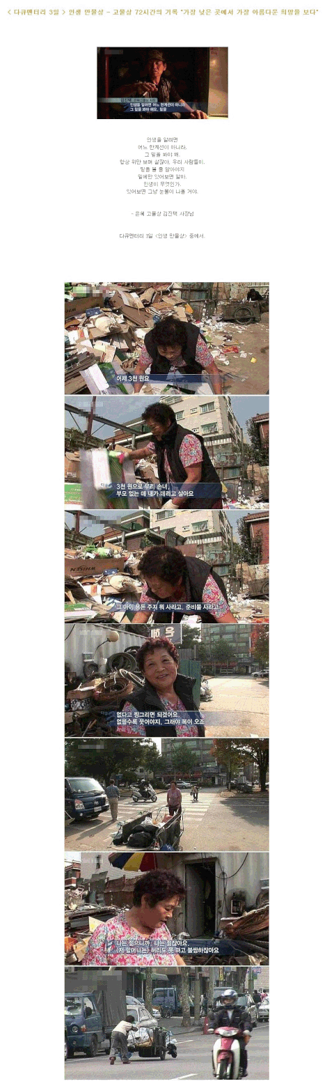 다큐 3일 VJ가 찍으면서 계속 울던 편