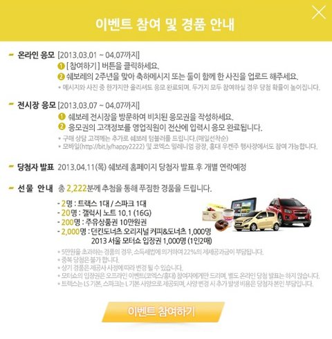 쉐보레가 벌써 2주년을 맞이했다고 합니다~ 그래서 대박 이벤트를 진행중!!!!