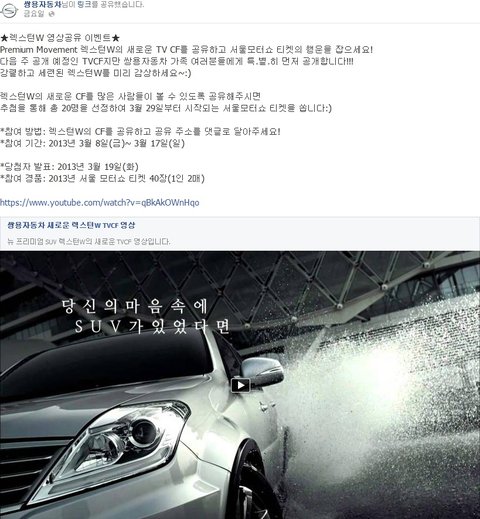3. 쌍용자동차 렉스턴W CF영상 공유 이벤트