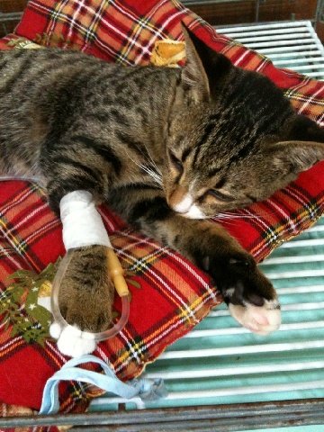 중성화 수술하고 회복실(?)에서 링거 꽃고 엎어져있는 우리 몽이!!