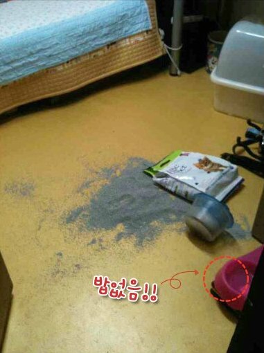이케 밥음따고 사료통과 모래봉다리를 뒤집어 엎는 성깔을 가지고 있음! ㅋㅋㅋ