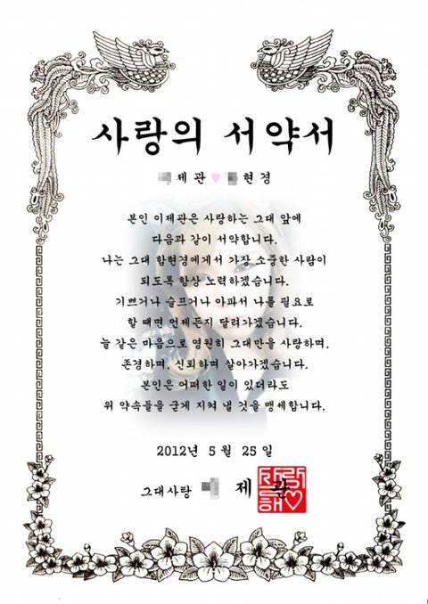 아래 사진은 사귀기도 전부터 들이댄 서약서