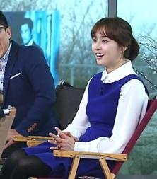 근데 한혜진 입은 화이트블라우스에 블루 원피스가