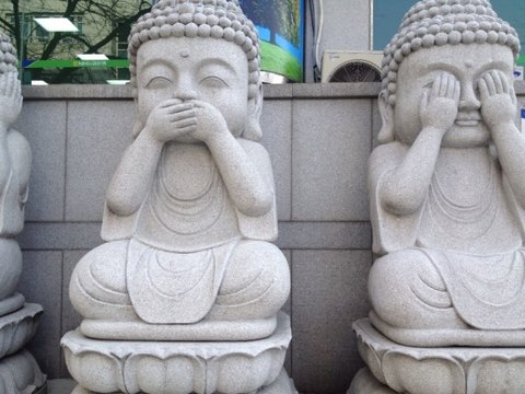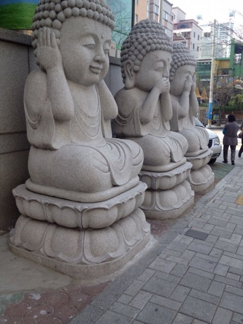 귀를 막고 입을 막고 눈을 가리고 있는 부처님들