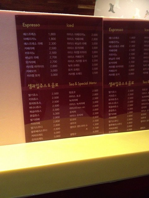 카페를 잘 가지않는 나로써는 커피이름들이 참 생소함ㅋ