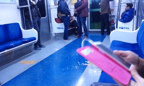 오늘 1호선 청량리행 타고 아홉시 반쯤 집가는 길에 대학생처럼 보이는 남자 무리가 쌍으로 지하철에 토를하고 내리더이다...
